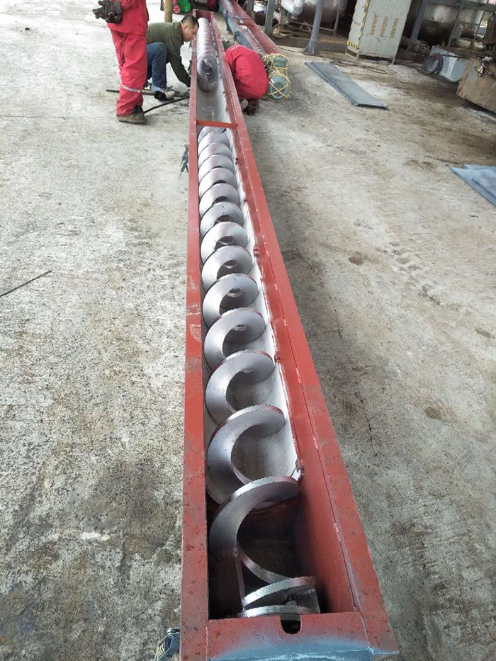 无轴螺旋输送机的螺旋叶片有实体螺旋面、带式螺旋面和叶片螺旋面三种形式,其中,叶片式螺旋面应用相对较少,主要用于输送粘度较大和可压缩性物料,这种螺悬面型,在完成输送作业过程中,同时具有并完成对物料的搅拌、混合等功能。