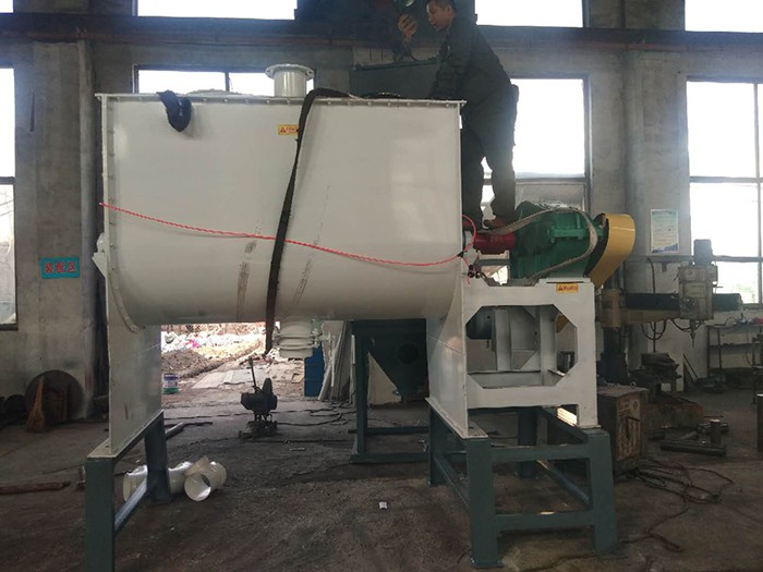 卧式混料机由U形容器、螺带搅拌叶片和传动部件组成;螺带状叶片一般做成双层或三层,外层螺旋将物料从两侧向中间汇集,内层螺旋将物料从中间向两侧输送,形成对流混合。 螺带混合机对于粘性或有凝聚性的粉粒体的混合以及粉粒体中添加液体及糊状物料的混合有良好的效果,筒盖可做成全开式门,以便于对设备进行清洗更换产品。